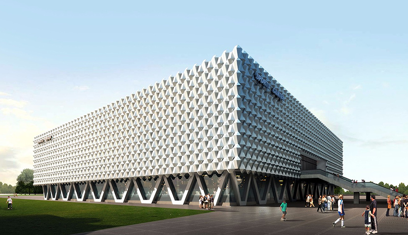 我國(guó)冬奧會(huì)冰球運(yùn)動(dòng)的舉辦場(chǎng)館——北京順義城南體育館,由北京艾爾豪斯膜式技術(shù)有限公司設(shè)計(jì)建造,其占地總面積約達(dá)9萬(wàn)平方米,由綜合體育館、體育場(chǎng)和室外運(yùn)動(dòng)場(chǎng)地組成,用地合理緊湊,造型方正,體育館立面采用棒槌型六面體基本元素,按順序排列,形成立面獨(dú)特風(fēng)格,現(xiàn)已基本完工投入使用。